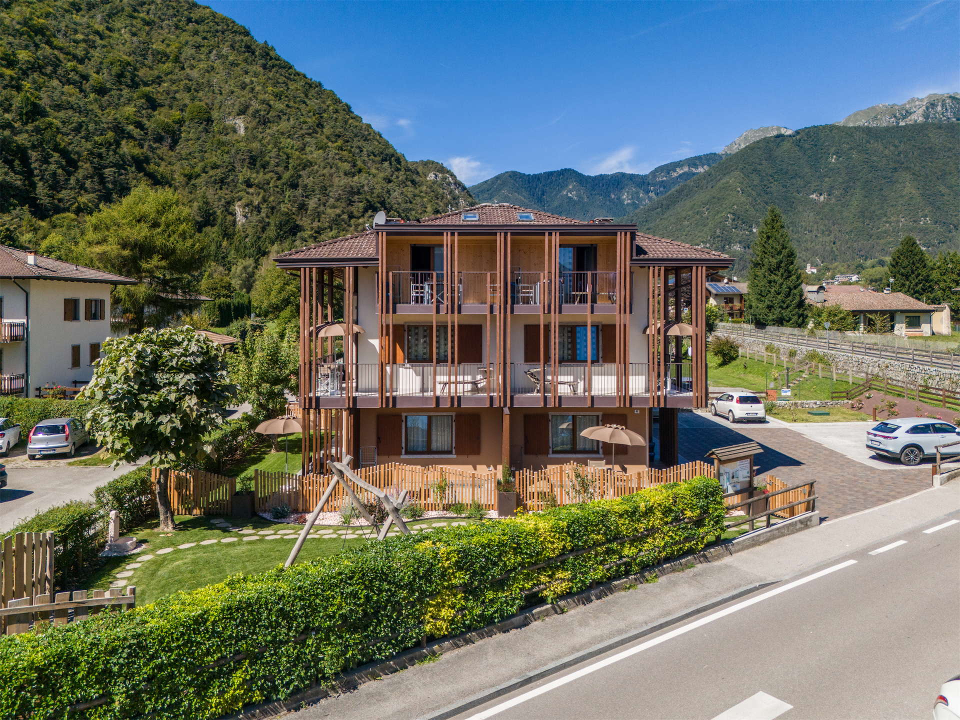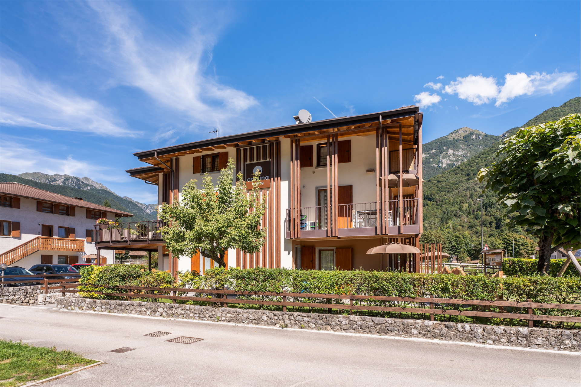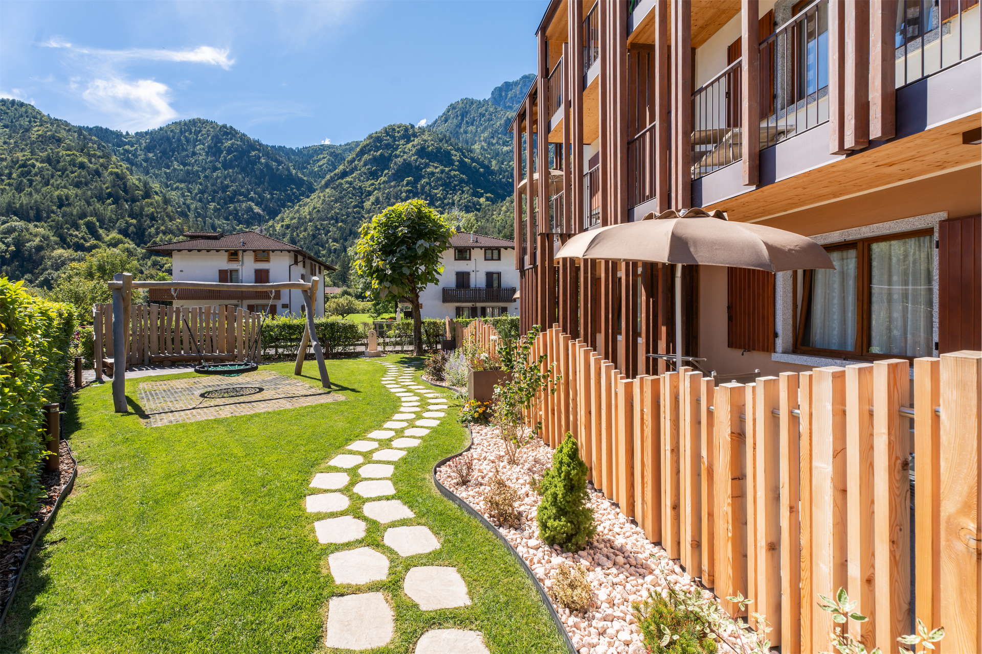 In the heart of the Ledro Valley, surrounded by mountains, panoramic paths and crystal clear waters, Casa Al Ponte offers spacious apartments for 2 to 5 people, with two different options: apartments with a balcony, or on the ground floor with direct garden access. All the apartments are designed to guarantee maximum freedom, in a well-kept and welcoming environment – ideal to explore the area or just relax in total peace.